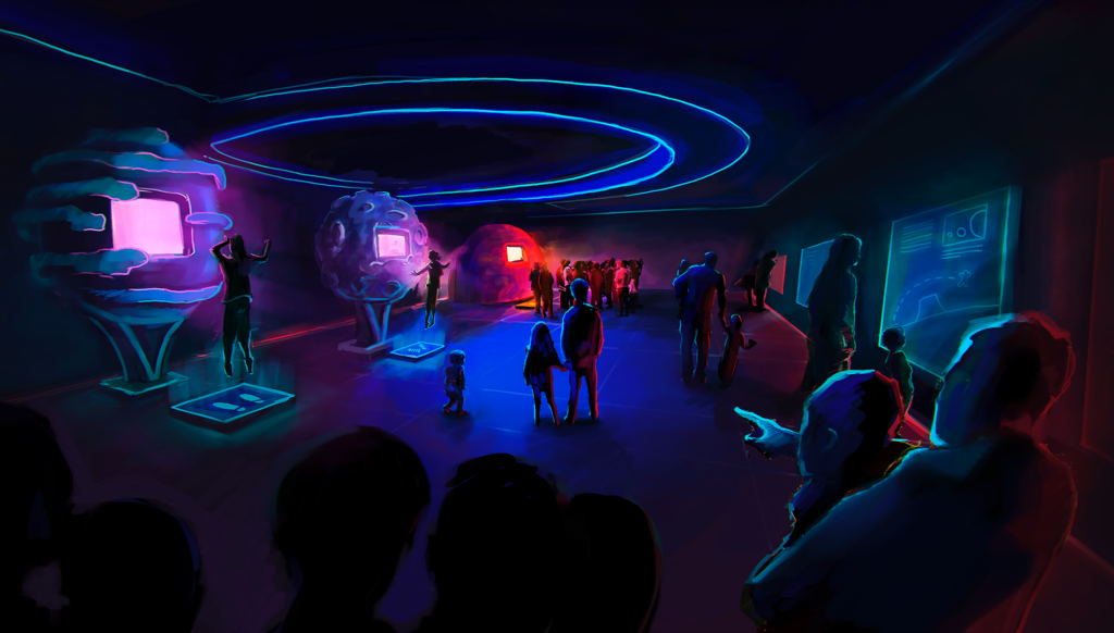 This is an interactive exhibit that lets visitors (children) feel the gravity of different celestial bodies by putting them in the boots of an astronaut jumping his way across their surfaces.