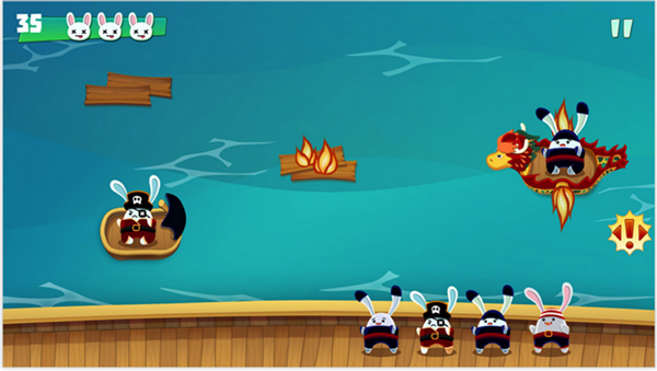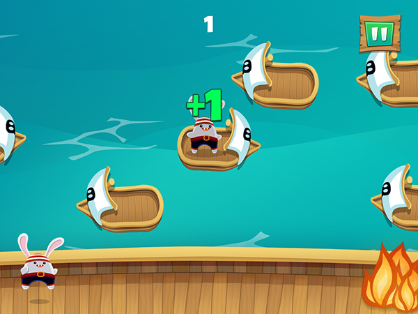 Scuttled (iOS) is a fast-paced, arcade mobile game where players rescue pirate bunnies by throwing them to the passing ships while avoiding flames.